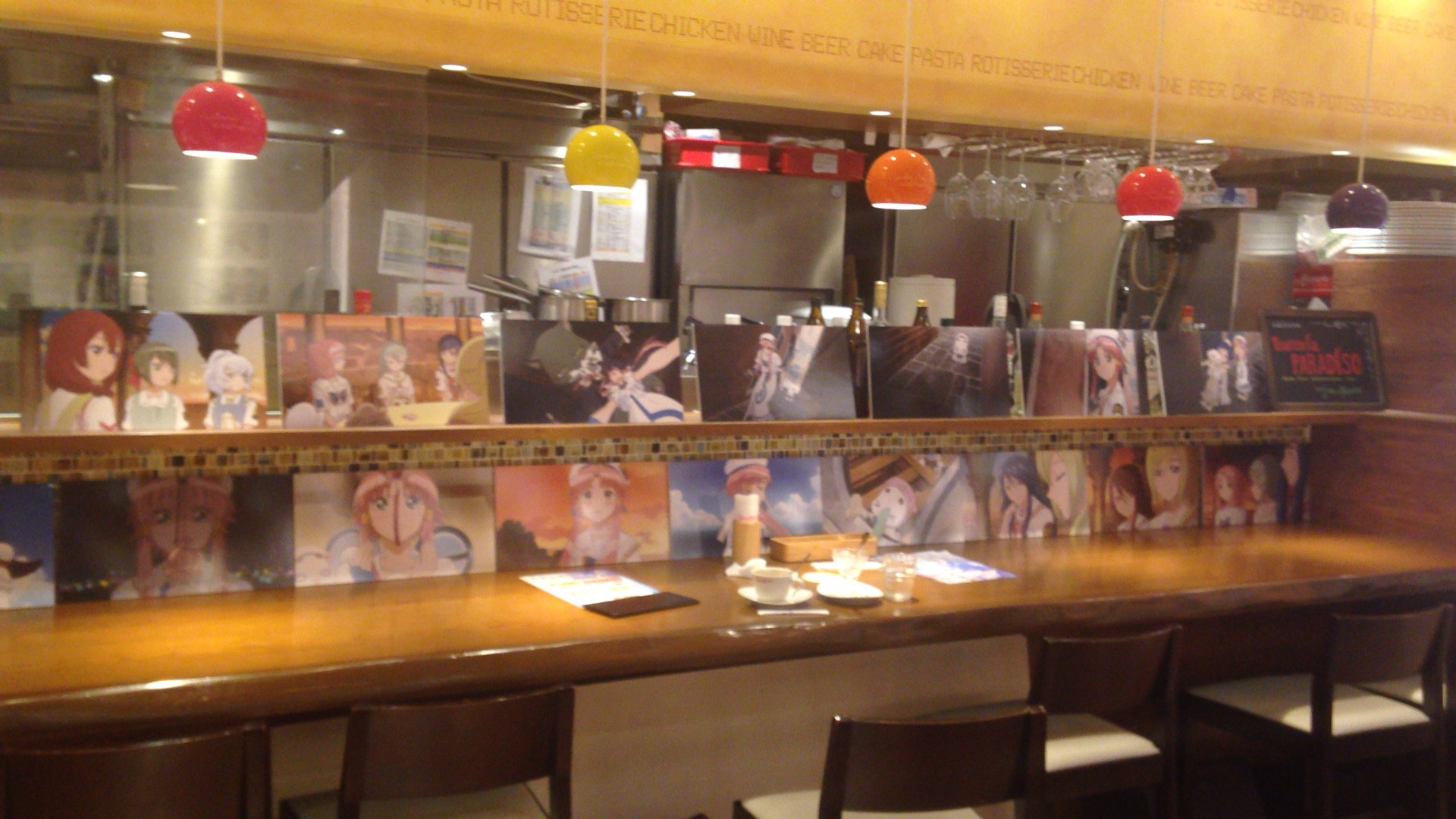 周囲の壁にはアニメシーンを切り取ったパネル